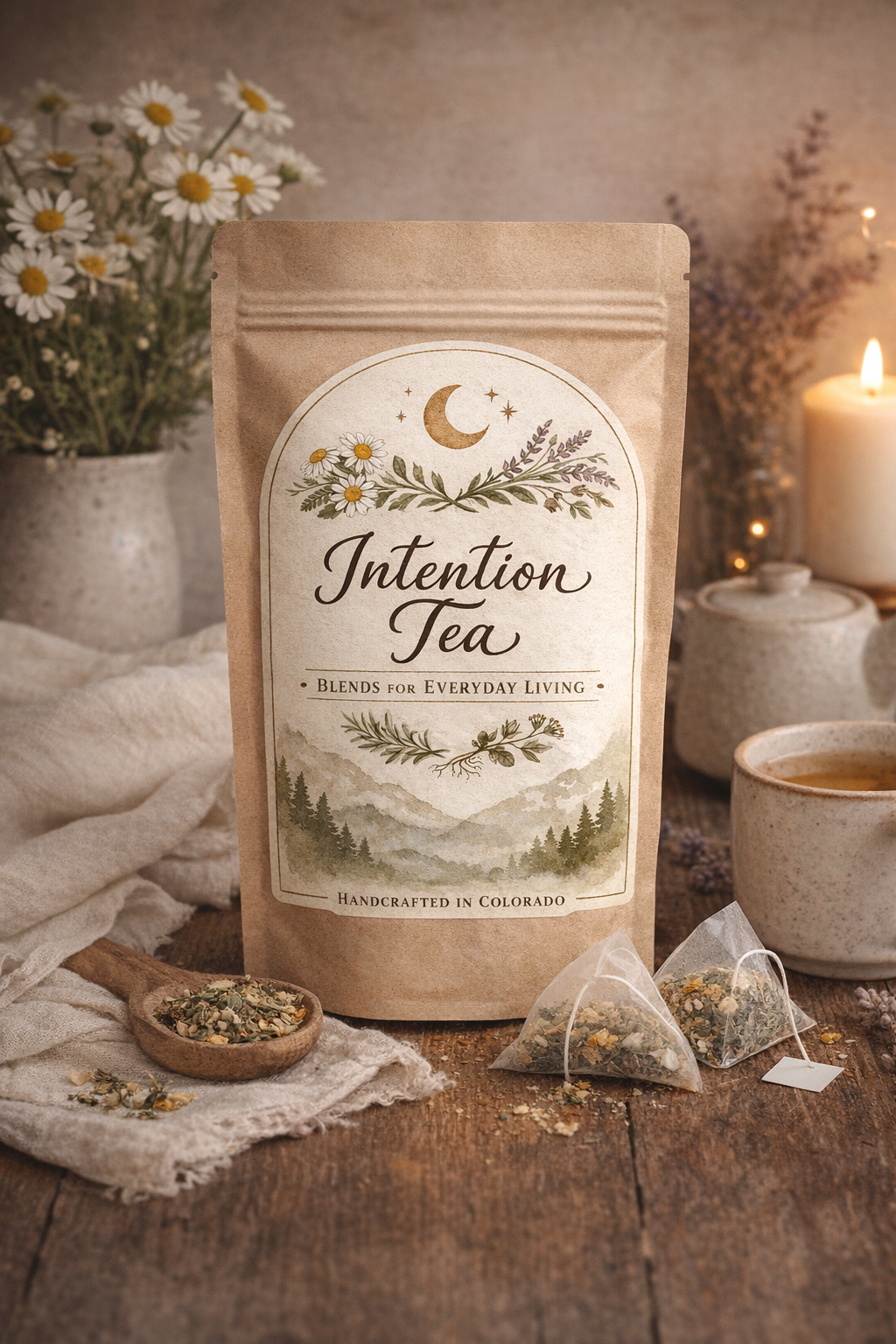 That same philosophy lives in Intention Tea — a collection of botanical blends crafted for slow moments, gentle rituals, and everyday balance.